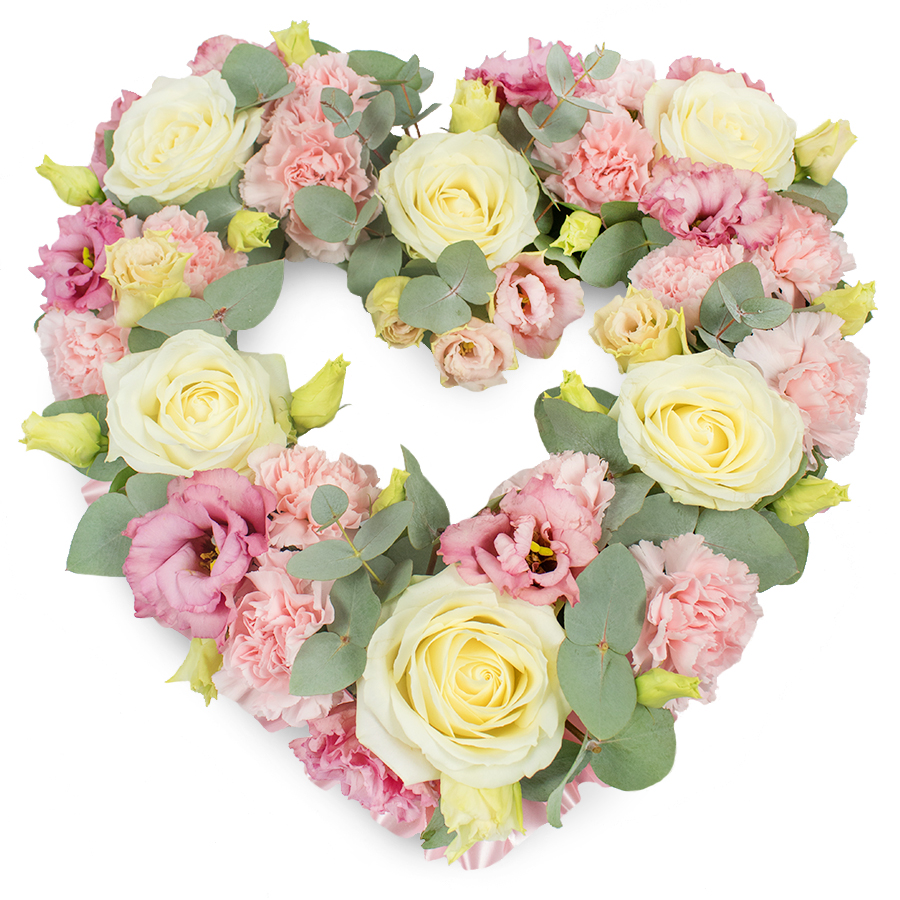 Our unique bouquet features a harmonious blend of elegant white roses, lovely pink carnations, delicate pink lisianthus, and soothing eucalyptus leaves. This visually striking design showcases the beauty and individuality of each flower.